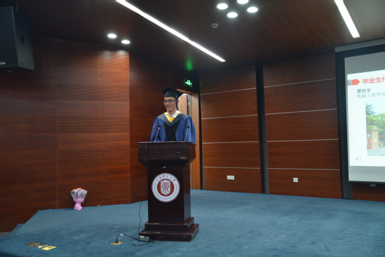 作为硕士毕业生代表,夏思宇同学在发言中表达了对母校的感激之情,他表示,要有“勇立潮头”的精神和“海纳百川”的品质,珍惜这个伟大时代给予的担当和信任,做新时代的奋斗者。本硕博都在上理工机械学院的博士毕业生于佳伟动情地说:“也许只有在毕业的时候,我们才能真切地感受到母校的恩情。从18岁到29岁,从08年那个初来上海的乡下小子,到今天能够博士毕业签约某大型国企的‘中年大叔’,我的心里充满对母校和恩师郑松林教授的感激。”