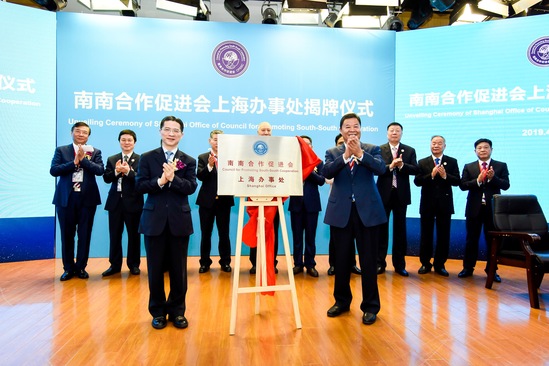 吕新华和周汉民共同为南南合作促进会上海办事处揭牌