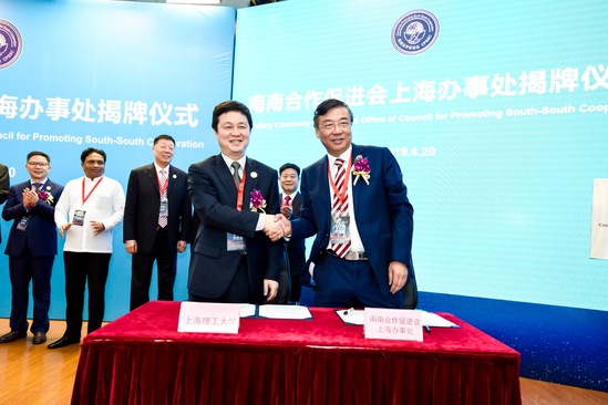 吕新华和周汉民共同为南南合作促进会上海办事处揭牌,丁晓东和洪涌清分别代表上海理工大学与南南合作促进会上海办事处签订战略合作框架协议。上海市人民对外友好协会副会长李群策、上海市浦东新区政治协商会议副主席王正泉、中国(上海)自由贸易试验区管理委员会张江管理局副局长吴俊、哈萨克斯坦驻上海总领事克拉把叶夫.佐齐汉等嘉宾共同见证了揭牌和签约仪式。