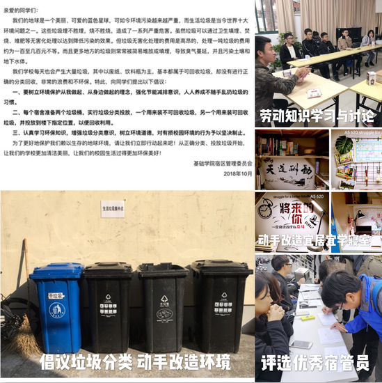 宿区开展“我与宿管员同劳动”“我最喜爱的宿舍管理员”评比活动,让学生自己评出心目中的优秀宿舍管理员,并设岗同宿管员一起劳动一天,用这种方式感谢宿舍管理员的辛勤劳动,促进双方增近理解,建立互信。