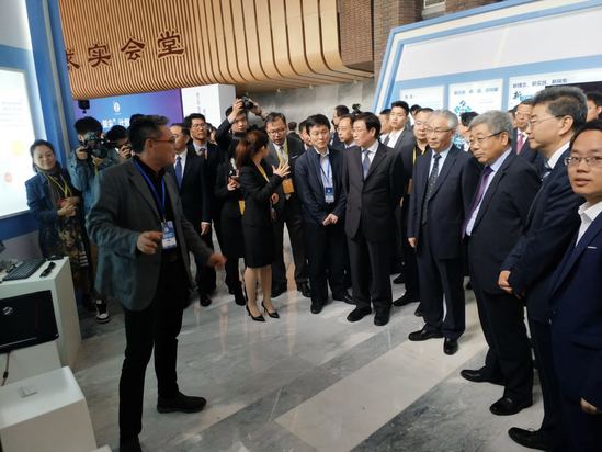 教育部党组书记、部长陈宝生,天津市市长张国清等领导同志莅临我校展位,听取我校杜宝江老师汇报学校在创新实验教学模式、虚拟仿真实验教学技术研发及教学理念与教学效果等情况,以及面向全国高校的虚拟仿真实验课程建设与应用情况。当听到全国高校学生都可以通过网络和我校的虚拟仿真实验教学资源开展虚拟设计与制造仿真实验,以及上海理工大学的本科生应用所学虚拟设计技术参与到国产大飞机零件的CAD设计中时,陈宝生部长给予了充分肯定。