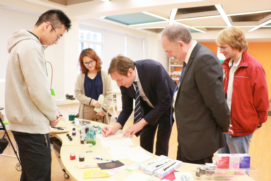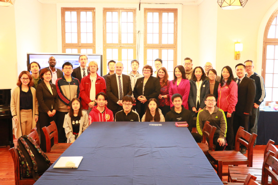 随后,Mark Power先生一行先后参观了校园建筑、教学区域以及教职工办公区域等,并与学生社团代表进行简要交流。