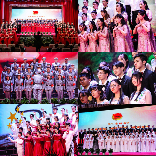 表彰大会结束后,五四合唱主题展演拉开帷幕。《我的祖国》、《我爱你中国》、《天耀中华》……嘹亮的歌声展现出我校学子的朝气,展现出新时代青年的精神面貌。伴随着全体与会领导、师生齐声合唱的《不忘初心》,上海理工大学纪念五四运动一百周年暨五四主题歌会圆满落幕。