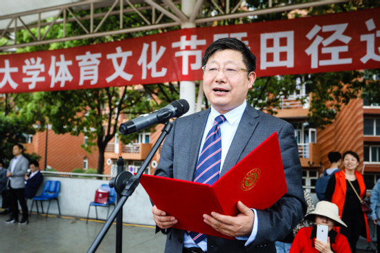 校长丁晓东致开幕词。他指出,当前正是我校建设高水平大学的关键时期,学校将不忘初心,牢记使命,秉承服务学生成长成才的宗旨,着力加强校园文化建设,特别要进一步加快体育课程改革,推动体育社团和阳光体育活动蓬勃开展,不断培养出德智体美劳全面发展的高素质人才,让学生朝着更快、更高、更强的目标冲刺,心怀伟大的梦想奔向更广阔的舞台。希望通过体育文化节让广大师生充分发挥自己的运动才华,尽情释放对体育的热爱,享受竞争、拼搏、奋斗、成功带来的喜悦,并不断突破自我,追求卓越,以新的更好的成绩向新中国成立70周年献礼。