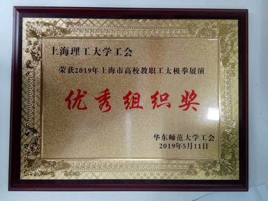 5月11日,由华东师范大学工会主办,华东师范大学教职工太极拳协会承办的“上海市高校教职工太极拳展演”在华东师范大学体育馆二楼举行。我校太极拳协会共计18人参加了本次展演活动,并获得优秀组织奖。