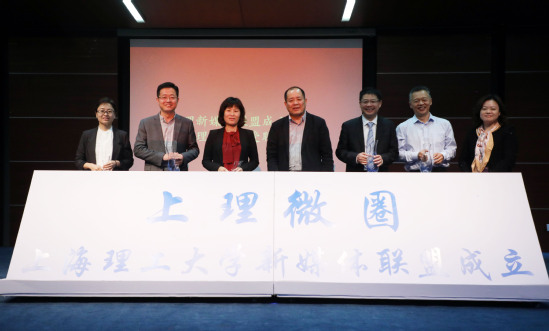 会上,张志伟、牛翔宇为学校易班发展中心揭牌,刘道平、盛春、张志伟与学校新媒体联盟理事单位代表,以倒沙的形式呈现出“上理微圈—上海理工大学新媒体联盟成立”的字样,宣告上理新媒体联盟正式成立。“上理微圈”是在学校党委领导下,由校园官方新媒体牵头组成的联盟组织,微圈的构建可以实现信息交流、资源共享、互动共赢。该联盟的成立创新了校园媒体话语表达体系和管理理念,深入推进了校园媒体融合和协同发展进程,壮大了校园主流舆论阵地和影响力版图。这一举措是我校对新形势下舆论与技术环境的主动适应,是我校当前网络和服务平台的不断升级的表现,有利于进一步提高宣传合力,树立学校良好的社会形象,提升学校社会美誉度。
