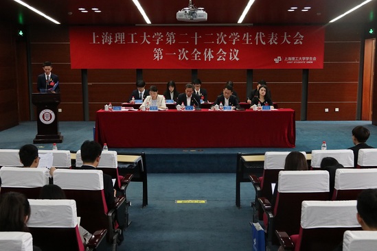 上海理工大学第二十二次学生代表大会第一次全体会议上,校学生会主席杜嘉源作《上海理工大学第二十一届校学生会工作报告》,从思想建设、组织改革、权益维护、活动开展四个方面对学生会的工作进行总结;校学生会副主席施沪彬受上海理工大学第二十二次学生代表大会提案工作委员会委托作《上海理工大学第二十二次学生代表大会提案工作报告》。
