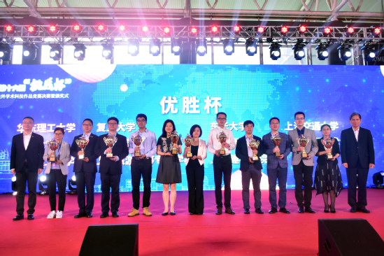 5月25至26日,第十六届“挑战杯”上海市大学生课外学术科技作品竞赛决赛在东华大学举行。经校内选拔,我校共输送14件作品参与市赛复赛,经过激烈的角逐,最终共有6支队伍挺进决赛,在为期两天的比赛中,各支团队发挥自身优势,精心布展,准备充分,最终斩获了特等奖1项、一等奖4项、二等奖1项、三等奖5项,这也是我校继2017年第十五届“挑战杯”市赛后再度斩获特等奖,并连续三届捧起“优胜杯”。