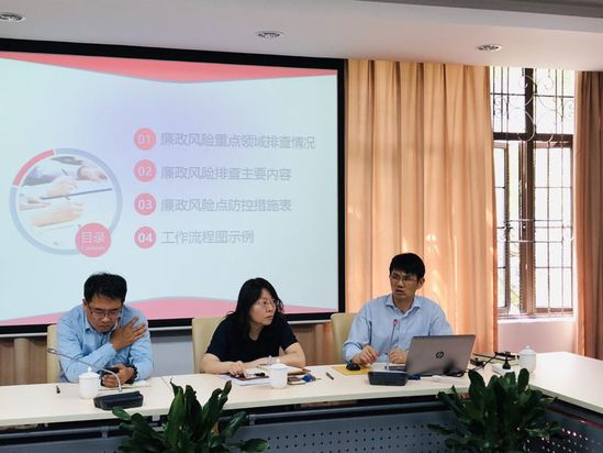 会上,纪委副书记、监察处处长施小明通报了去年党风廉政建设重点领域廉政风险排查工作进展情况,明确了今年各职能部处及相关重点领域廉政风险防控工作的主要内容和工作要求。学校基建处、资产设备与实验室管理处作为廉政风险重点领域代表,交流了本部门开展党风廉政建设重点领域风险排查工作进展情况及经验体会。审计处处长杨英以“干部履行经济责任主要风险提示”为主题,从审计评价中风险的披露、审计发现问题的风险提示和审计建议三个方面重点阐述了目前各部门负责人在履职过程中发现的风险隐患与注意事项。各职能部处及相关重点领域部门负责人围绕廉政风险点进行了深入探讨。