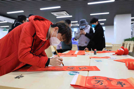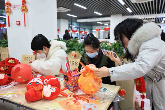 赏年俗,品美食,领奖品,留校学生们享受着温馨的校园年味。“今年留校过节不孤单!” 材料学院大四学生刘明杰还在现场写了一幅春联,打算晚上贴在寝室门上。