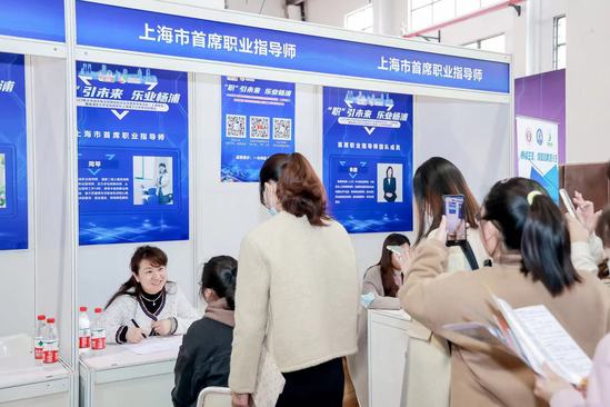 招聘会现场还设置了“职业指导”服务专区、“政策咨询”服务专区、“征兵咨询”服务专区等三大服务专区,由上海市就业服务专家、乐业导师和首席职业指导师团队提供现场职业指导服务,并提供人才引进落户、租房补贴、大学生就业见习实习、职业培训、劳动关系、征兵入伍等政策咨询服务,为求职人员提供了更加全面的服务要素。记者看到,下午四点半,距离招聘会结束只余半个小时,“职业指导”服务专区前依然是人头攒动。杨浦区人社局相关负责人介绍,近年来“职业指导”服务专区在招聘会现场特别受求职者欢迎,“特别是高校毕业生,都渴望有一份清晰的职业规划。因此此次招聘会,我们充实了‘职业指导’的阵容,邀请到10位经验丰富的就业服务专家现场位毕业生们答疑解惑”。朱晴是杨浦区就促(人才)中心职业指导师,从事职业指导已有四五年,今年多场招聘会她都在现场,仅是今天这场就先后接待了15位求职者的咨询,“大部分来咨询的高校毕业生手里其实都有了两到三个offer,他们的问题大多关于如何取舍,由此也能看出当前人才市场有一定的回暖”。