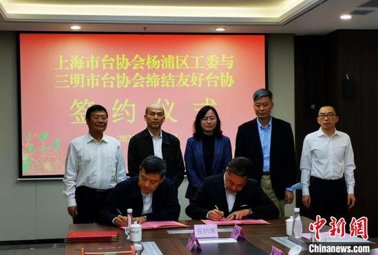 在交流座谈会上,三明市台湾同胞投资企业协会与上海市台湾同胞投资企业协会杨浦区工作委员会缔结友好台协、三明市三元区台湾同胞联谊会与上海市杨浦区台胞台属联谊会缔结友好台联、上海市杨浦区台生社会实践(尤溪)基地揭牌。
