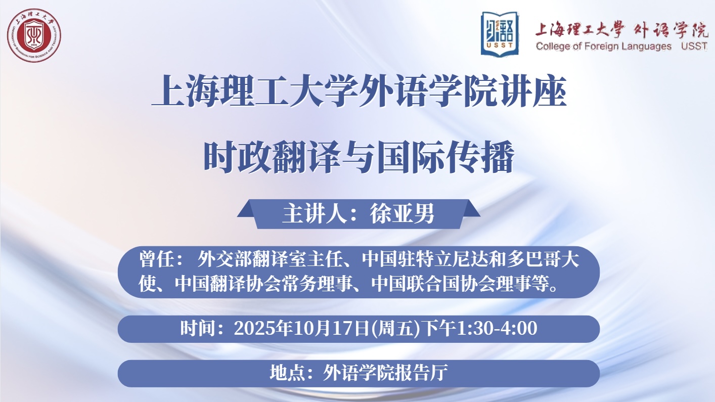 主讲人:徐亚男,曾任:外交部翻译室主任、中国驻特立尼达和多巴哥大使、中国翻译协会常务理事、中国联合国协会理事等。