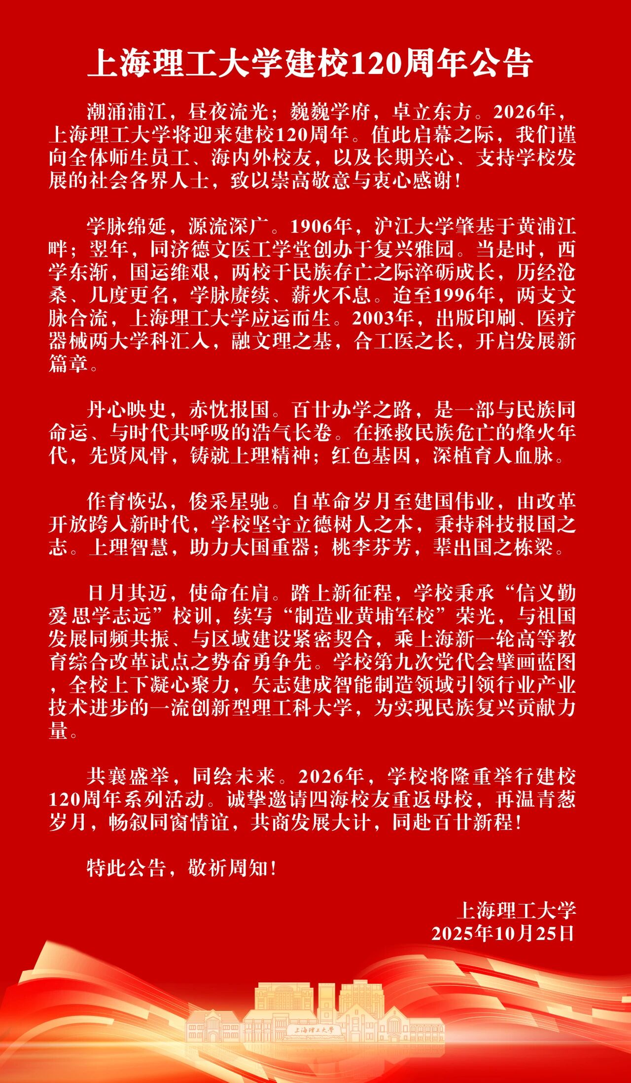 10月25日,上海理工大学正式启动建校120周年倒计时一周年系列活动,为2026年庆祝建校百廿主题活动拉开序幕。