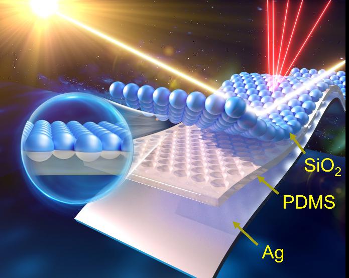 微球聚合物耦合超表面辐射制冷超薄薄膜概念图