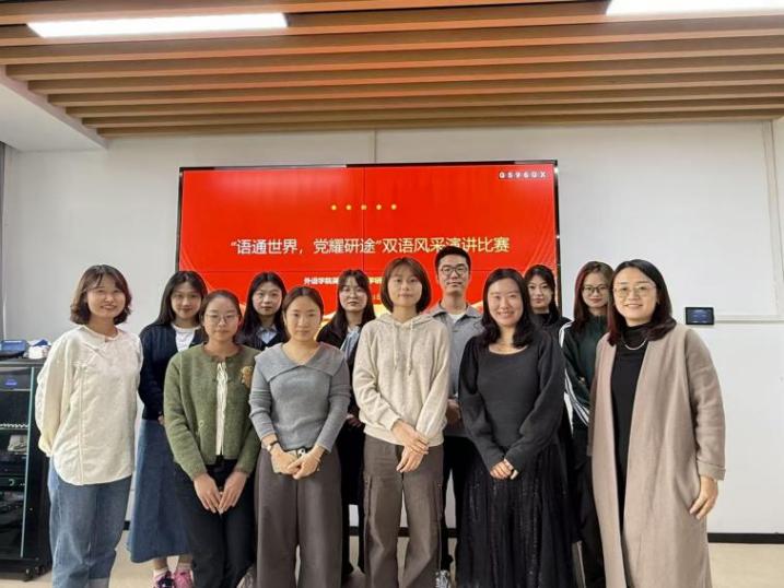 10月31日,上外语学院英语语言文学党支部在外语楼502成功举办以“语通世界,党耀研途”为主题的双语风采演讲比赛。本次活动由支部书记王晨主持,并邀请专业教师毕一飞、智玉英共同担任评委。