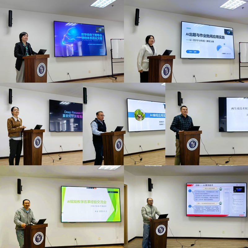 为深入贯彻教育数字化战略行动,探索人工智能在教学改革与课堂创新中的应用,11月3日,健康科学与工程学院医学人工智能系举办“AI赋能教学改革经验交流会”。本次活动汇聚了多名来自医学信息工程教学一线的教师代表,他们围绕AI在课程设计、教学互动、案例生成、教学评估与专业体系优化中的实践经验进行了分享与探讨,为推动智慧教育发展提供宝贵经验。健康学院多个专业的30余名教师参加会议。