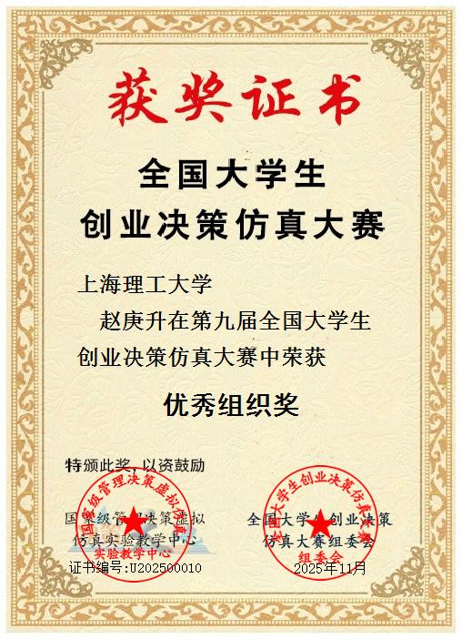 近日,第九届全国(暨上海市第十一届)大学生创业决策仿真大赛落下帷幕。本次大赛得到上海市教育委员会支持,由东华大学“国家级管理决策虚拟仿真实验教学中心”承办,为全国大学生提供了一个展示创业才华、交流创业经验的重要平台。我校共有18支队伍闯入决赛,最终获一等奖1项、二等奖11项、三等奖3项,我校获“优秀组织奖”。