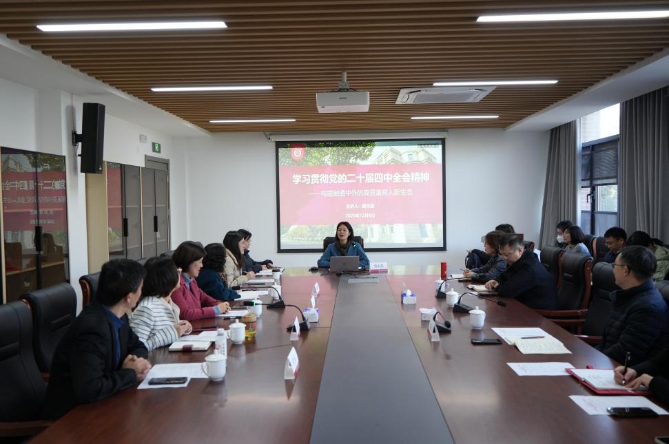 为深入学习贯彻党的二十届四中全会精神,切实把思想和行动统一到全会部署要求上来,12月9日下午,外语学院党委、中德国际学院党委、沪江学院党总支理论学习中心组召开联组学习会。副校长蔡永莲出席会议并作辅导报告,外语、中德、沪江学院中心组成员参加会议,会议由外语学院党委副书记、院长刘芹主持。