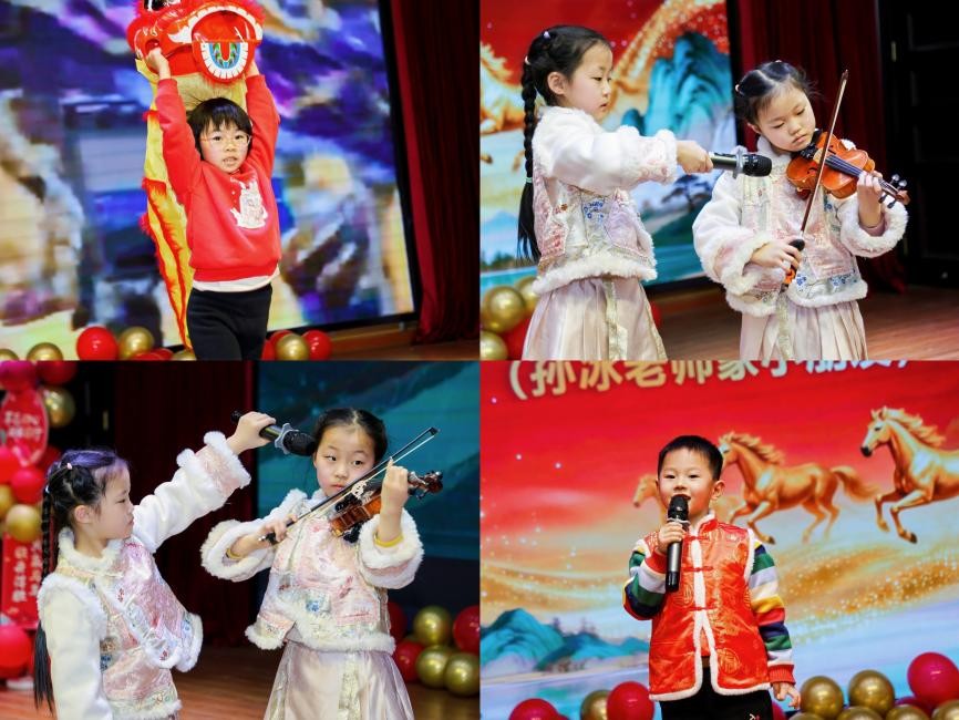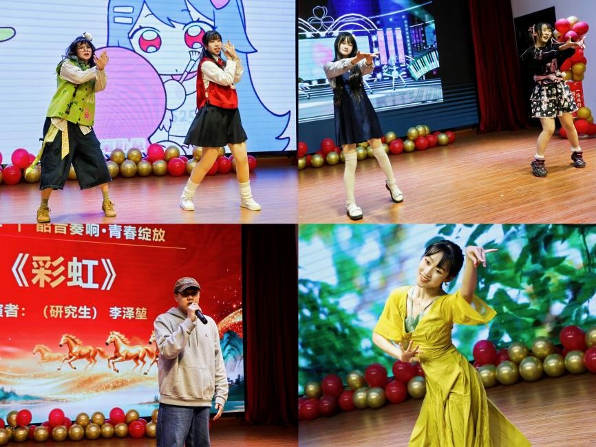 本次年会以"环筑新章·绿动未来"为主线,精心编排"青衿跃动·星光启航""韶音奏响·青春绽放""风华映筑·平凡星光""鼓韵铿锵·同心致远"四大篇章,层层递进演绎环建人的多元风采。节目形式丰富多样:活力四射的舞蹈《听见wo》、《快乐合成器》,动感节拍点燃全场,青春舞步彰显环建学子的蓬勃朝气;研究生代表独唱《彩虹》、王苏然老师深情演绎《平凡的一天》,用歌声致敬每一个伏案备课的深夜与实验室不灭的灯光;学工办团队的歌舞《青衿环建·新岁序章》和院办团队的《我相信》重温从教初心,将其化作铿锵誓言;童声朗诵《马年说马》萌趣十足,小提琴联奏《新春乐》悠扬婉转,压轴的少儿舞狮《中国龙》更是腾跃翻飞、威风凛凛,引得满堂喝彩。