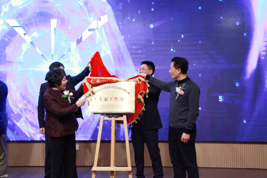 刘宝林教授(右一)为原能生物专家工作站揭牌