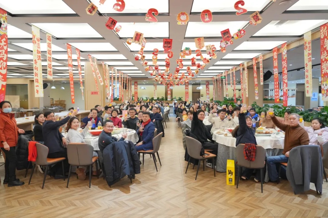 拓印福字的红纸未干,食堂后厨已飘出阵阵菜香,上海建桥学院校领导们系着围裙,戴着厨师帽,正将刚出锅的宫保鸡丁、可乐鸡翅等装盘……家常菜,最有烟火味,也最有家的味道。在临港校区南食堂三楼的桃源餐厅,留校学生们围坐在一起,等待马年团圆宴开席。