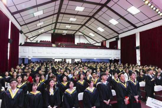 栀子花开的季节,是毕业的季节,又一届学生在美丽的校园度过了四年青春岁月。5月30日上午,医疗器械与食品学院2019届本科生毕业典礼在大礼堂举行。校友工作联络处副处长王蕊,学院党政领导、各专业老师代表、辅导员、家长代表等与2019届380名本科毕业生齐聚一堂,共同见证这一美好时刻。 毕业典礼在一组组暖暖的照片中拉开帷幕,带着在场师生重温从入学到毕业的点点滴滴,勾起了一段段美好的回忆。 院长刘宝林在致辞中表达了对毕业生们的衷心祝福,同时向同学们提出殷切期望,希望同学们时刻秉承校训,带着知识和爱投入医疗器械行业和食品行业中,当好国民健康守护者,希望同学们懂得感恩,永远支持、关心学院学校的发展。同学们的成长离不开老师的谆谆教诲,老师的谆谆教诲像一股暖暖的春风。陪伴了同学们四年的辅导员、班主任、专业教师们纷纷通过视频为同学们送上最真挚的祝福,毕业生代表也为在场的老师们送上鲜花,表达感激之情。 随后,学院副院长葛斌宣读了“上海市优秀毕业生”和 “上海理工大学优秀毕业生”表彰决定,学院副院长艾连中、党委副书记郑静为获得荣誉的同学们颁发荣誉证书。学院党委书记黄慧宣读了“2019届校友联络员”名单,并与王蕊一起为校友联络员们颁发聘书。 毕业生代表石勤振的发言深切表达了同学们对母校和老师的感激眷恋、对同窗的依依不舍。在校学生代表李文慧为学长学姐们送上了衷心祝福。毕业生为学院校友基金会捐赠“壹拾基金”。一段《上理·玖别》视频把毕业典礼推向了高潮,当音乐声响起,在上理学习、生活的一幕幕深深触动了在场师生的内心。毕业典礼在激扬的校歌声中落下帷幕。