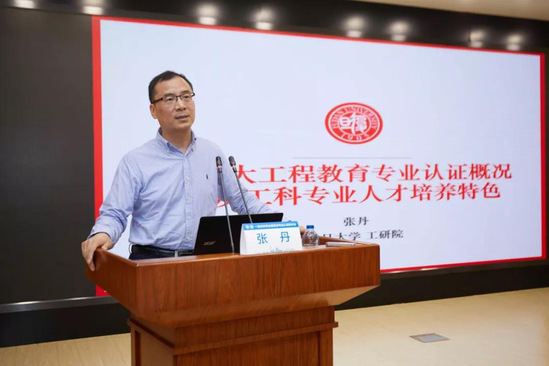 陈道蓄教授作主题报告 陈道蓄“实现课堂从知识传递到能力培养的转变——专业认证的核心价值”:“以学生为中心”要在课堂中充分体现“目标导向”,要能说清楚学生“能力”目标,形成学生“能力培养”效果评价机制。