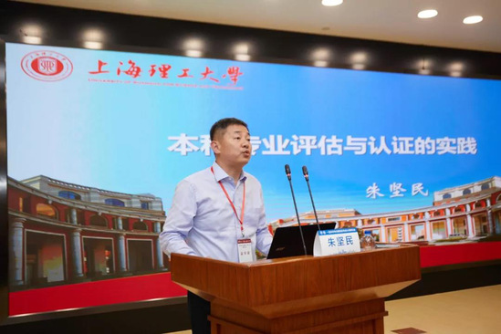 朱坚民处长作主题报告 朱坚民“上海理工大学本科专业评估与认证的实践”:上海理工大学打好专业评估+专业认证的“组合拳”,以“三个面向”引领专业改革与建设:面向行业需求,促进产教融合;面向国家标准,强化专业内涵建设;面向国际互认,提升专业国际化水平。