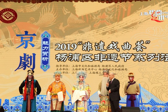 6月5日晚,“高雅艺术进校园——杨浦区非遗戏曲荟国粹魅力赏析”活动在我校大礼堂举行。副校长张华、杨浦区副区长尼冰出席活动。 本次活动由上海市文化和旅游局、杨浦区人民政府指导,上海戏曲艺术中心、杨浦区文化和旅游局主办,上海京剧院和我校共同承办。国家一级演员、上海京剧院著名京剧表演艺术家、梅花奖、白玉兰奖获得者、人称“抒情花脸”的裘派京剧艺术家安平带领表演团队,以生动活泼的边演边讲的方式带领观众领略京剧艺术的魅力。现场观众情绪高昂,共同享受了一场戏曲盛宴。《花脸艺术、京剧变脸》、《老生、青衣、老旦联唱》展示了京剧的基本行当,《三岔口》、《拾玉镯》、《梨花颂》、传统武戏《泗州城》、《铡美案》等经典剧目选段让师生们感受到了国粹的博大精深,引得观众连连叫好。安平老师结合每个剧目中艺术家们的表演深入浅出地向观众讲解中国京剧的艺术特色、表演风格、美学特征,让广大师生细致了解到了京剧的文化积淀和艺术内涵。 校团委将继续以开展精品文化艺术活动助力学校高水平大学建设,引领青年师生增强文化自信,献礼新中国成立70周年。
