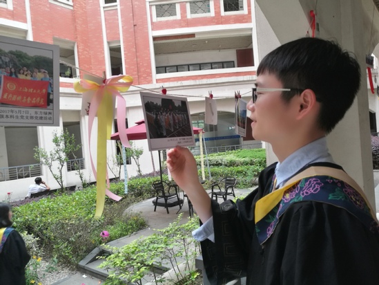 为学弟学妹赠“一本书” 寄“一封信”,集“一组照片”,为自己所学的专业做“一次代言” 三年前,在辅导员老师的引导下,同学们写下了一封信给毕业时的自己。如今,即将毕业,毕业生们收到了这封三年前写给自己的信,他们感慨于时间的飞逝,也为自己实现了三年前立下的目标而欣慰。毕业是一个新的开始,毕业生再次写下与自己十年后的约定,并在毕业典礼当天投放到时间信箱中,相约十年后重聚上理,来这“理”开启尘封的记忆。 一同走过朝朝暮暮的日子,刻下几道深深浅浅的印记,同学们在上理相遇、相识、相知、相爱。5月份,学院征集了大学期间与室友、同窗好友、研友等一起的照片,并将其整理汇总,在学院本科生毕业典礼中温馨展出。专业是毕业生最亮的名片,四年来专业知识的学习也打造了同学们的核心竞争力,5月底,各专业的学霸们纷纷为自己的专业代言,用自己的学习经历解读所学专业。