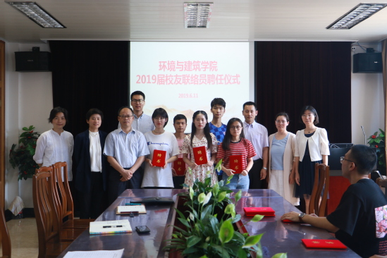 6月11日下午,环境与建筑学院在306会议室召开2019届校友联络员聘任仪式,环境与建筑学院党委书记焦雪勐、院长黄远东、党委副书记冯磊、学院校友相关工作老师及受聘的毕业班校友联络员共同参加了聘任仪式。学院党委副书记冯磊主持。 会上,院长黄远东宣读了2019届校友联络员名单,并希望他们毕业后能够主动承担好校友和母校之间的桥梁作用,为学校的事业发展注入新的活力,与会教师共同为校友联络员们颁发了聘书。 环境工程本科毕业生贾赞祺同学代表2019届全体校友联络员进行发言,她表达了对母校和老师们的感恩和不舍,并表示走上工作岗位后,一定传承母校精神,积极发挥校友联络员在校友与母校之间联系的桥梁和纽带作用,时刻和母校保持密切联系。 焦雪勐在会上发表讲话,他首先祝贺2019届本科生、研究生同学们顺利毕业,希望2019届校友联络员们从学生身份向校友身份转变中,能热心热情做好学院和班级校友的联络工作,在自身发展的同时关注母校发展,积极向同学们传递母校发展的信息,与全校教职工共同推进母校高水平大学建设,并嘱咐同学们铭记母校永远是同学们的港湾,欢迎同学们常回家看看。