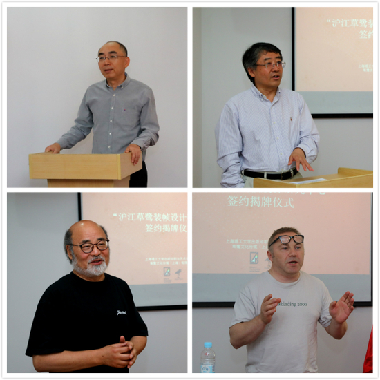 为进一步强化版艺学院装帧设计研究与行业接轨,2019年6月28日上午,由版艺学院与草鹭文化传媒(上海)有限责任公司联合打造的“沪江草鹭装帧设计研究中心”成立仪式在德国文化中心举行。 上海世纪出版集团副总裁、原上海新闻出版局副局长阚宁辉,草鹭文化传媒(上海)有限公司董事长、真格基金联合创始人、新东方联合创始人王强,著名出版人、原中国外文局海豚出版社社长俞晓群,书籍设计大师、视觉艺术家吕敬人,英国 Studio 5“5工作室”创始人、英国书籍装帧协会会员、纽约书籍艺术中心研究员马克·科克拉姆,上海理工大学党委常委、总会计师赵明,版艺学院党委书记吴建安、党委副书记尚娅、副院长陶海峰及设计专业骨干教师出席成立仪式。活动由陶海峰主持。 首先,吴建安向出席本次活动的嘉宾致欢迎辞,他表示,沪江草鹭装帧设计研究中心以精装书装帧工艺、装帧材料、装帧文化、出版文创IP为主要研究方向,具有时代性和前瞻性,可以更好地强化学院出版传媒研究特色。阚宁辉、吕敬人、王强、马克·科克拉姆等嘉宾们进行了交流发言。阚宁辉阐述了设计研究中心成立的意义和作用;吕敬人从文化的角度来阐述中、西书籍设计的区别,鼓励研究中心要走出去、引进来,多进行国际交流;王强从一个收藏家的角度来看待西方书籍装帧的发展,极富激情地阐述了书籍收藏的未来产业化模式;马克·科克拉姆就学生培训及装帧学习角度进行了发言。 随后,上海理工大学与“草鹭文化”签订战略合作框架协议,吴建安与王强作为双方代表进行签约。赵明和阚宁辉为“沪江草鹭装帧设计研究中心”揭牌,并为“中心主任”“常务主任”“中心副主任”“特约研究员”颁发聘书。 最后,赵明作总结讲话。他指出,大力发展文创产业是党的十九大提出的一项重大战略,“沪江草鹭装帧设计研究中心”融合传统装帧设计美学与现代文创设计,依照国家对文化创意领域的指导方针,贯彻上海市“文创五十条”精神,将为文化创意产业提供前沿研究成果,为高校提供创新型人才培养模式参考。他对研究中心在未来推动上海理工大学该专业领域的发展和专业人才的培养寄予了厚望。 据悉,“沪江草鹭装帧设计研究中心”的首次课程——《西式精装书》工作坊于6月26日在版艺学院艺术设计系展开,英国书籍装帧协会会员、纽约书籍艺术中心研究员马克·科克拉姆讲授了书籍封面装饰和函套收藏盒制作等实训课程。