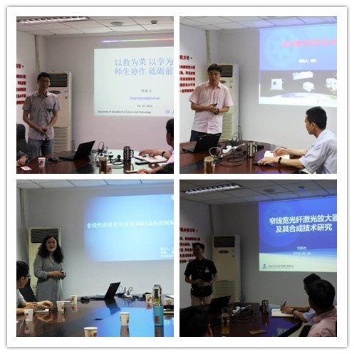 作为党支部共建活动之一,中科院上海光机所空间激光信息技术研究中心第二党支部与上海理工大学光电信息与计算机工程学院光学工程博士生支部于6月28日联合举办了“科技创新与人才教育培养”论坛。该活动由两个党支部委员会联合策划,在上海光机所空间激光信息技术研究中心会议室、高功率光纤激光技术实验室和高功率激光物理联合实验室进行,本次活动得到上海理工大学光电信息与计算机工程学院党委、上海光机所空间中心党总支和联合室党总支的大力支持。 活动伊始,上海光机所空间党总支书记朱小磊、上海理工大学光工博士生党支部书记王强分别致辞。朱小磊表示,希望两个共建党支部积极探索、大胆实践、优势互补、共同发展。王强对空间党总支的高度重视和大力支持表示了感谢,简要回顾两个支部自共建以来的活动情况,希望两个支部牢记使命、深化合作,并介绍了下一次共建活动的具体设想。 支部共建双方的研究生导师代表围绕创新人才培养、研究生代表围绕科技创新进行了交流。上海理工大学光电学院杨康文副教授作题为《以教为荣,以学为乐,师生协作,砥砺前行》的报告,介绍了自己在教学和研究生培养过程中的具体做法,分享了与研究生合作攀登科技高峰的酸甜苦辣、经验体会和理性认识。上海光机所高功率光纤激光技术实验室何兵研究员作题为《空间激光技术及上光所研究生教育》的报告,介绍了上光所空间激光中心三个实验室的研究方向、研究特色和优势,并介绍了上海光机所在招生政策、研究生待遇等方面的基本情况。上海理工大学光电学院博士生田甜同学作题为《非线性有机光电材料的制备及应用》的报告,上海光机所高功率光纤激光技术实验室硕士生刘美忠同学作题为《窄线宽光纤激光放大器及其合成技术研究》的报告。 双方还分别在高功率光纤激光技术实验室、高功率激光物理联合实验室进行了现场参观与交流互动。