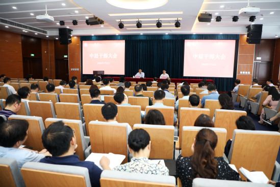 7月3日,学校在先进制造大楼一楼报告厅召开中层干部大会,全体在校校领导、全体中层干部参加会议。会议由党委书记吴坚勇主持。 校长丁晓东从“人才培养、学科建设和科研工作、师资队伍建设、后勤保障、大学治理、长三角一体化”六个方面对上半年工作进行了回顾总结。他指出,要立足于世界百年未有之大变局,深刻把握高等教育发展规律;要立足于全球科技发展的前沿,来谋划布局人才培养、学科建设与科技创新;要立足于世界高等工程教育的未来发展趋势,推进学科交叉融合,更好服务于经济社会发展;要立足于上理工的历史方位和使命担当,全面推进高水平大学建设。关于暑期及下半年重点工作,他指出,2019年是学校高水平大学建设的攻坚年,全校师生要紧紧围绕学校发展“一体两翼”的总策略,不忘初心、面向未来,啃好教育教学改革和信息化水平升级等改革发展的“硬骨头”,为把学校早日建成特色显著的一流理工科大学而善谋实干。他要求全体干部教师要充分利用好暑期时间,加强调研,加深思考,积极行动,确保各项任务的圆满完成。 吴坚勇作总结讲话。他表示,第八次党代会以来,学校党政和全校上下对学校发展目标已经形成高度共识,阶段性成果逐步显现,学校事业呈现加速发展的喜人态势。同时,学校事业发展总体正处于爬坡过坎的攻坚期,要进一步认清形势,攻坚克难,各部门和学院应结合自身实际,对标各项要求,做好工作落实。他强调,一要发挥党组织的目标导向和党建引领作用,二级党组织要突出先进性要求和凝聚力建设,对标全校“一盘棋”,聚焦重点,找准发力点,拉长长板,补齐短板,特别注重抓基础、抓长远、抓落实。二要守住安全稳定的底线,不断提高防范化解风险的能力,做好意识形态、实验室安全、校园安全、防汛防台等安全稳定工作,全力做好学生就业工作。三要积极筹划推进庆祝新中国成立70周年主题活动和“不忘初心、牢记使命”主题教育。最后,他对下学期工作调研、新型班主任制度实施、智慧校园建设、暑期走访慰问等重点工作进行了部署。