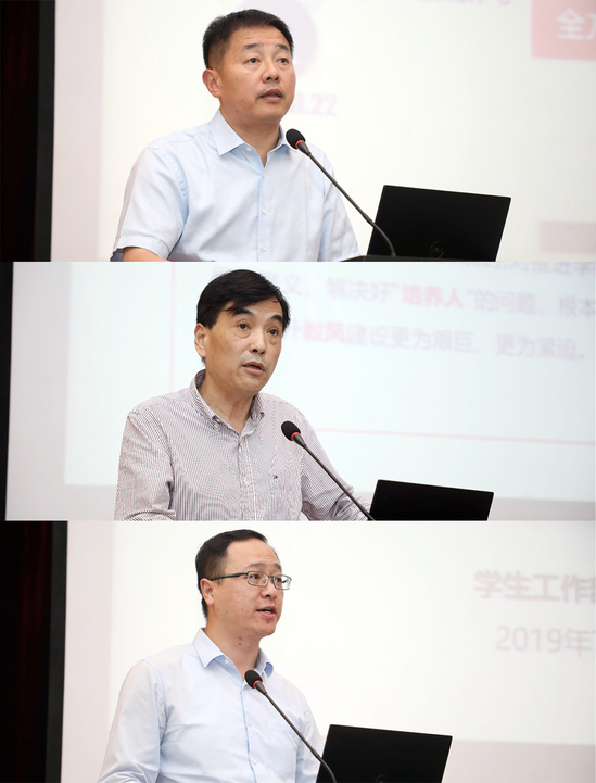 7月5日下午,上海理工大学本科教育思想大讨论总结大会在综合楼报告厅召开。校党委书记吴坚勇,校长、校党委副书记丁晓东等全体校领导,全体中层干部、全体专业负责人、教师代表、学生代表等200余人出席。会议由丁晓东主持。 校党委书记吴坚勇作题为“新时代新使命 卓越工程教育改革再深化”的主题报告。吴坚勇充分肯定了开展本科教育思想大讨论的必要性,他表示,在学校周密部署下,各职能部门、各学院积极组织推进,全体师生员工深入参与,取得了三方面的成果。第一,统一了思想、提高了认识,更加深刻认识到新时代党和国家对新时代高等教育的根本性要求。在全国教育大会、新时代全国高等学校本科教育工作会议和“六卓越一拔尖”计划2.0启动大会等会议精神指引下,坚持立德树人根本任务,培养德智体美劳全面发展的社会主义建设者和接班人。第二,查找了不足,明确了目标,更加深刻把握好新时代党和国家对高校的新使命新要求,更加清醒认识到我校人才培养工作与上海市高水平地方大学建设要求所存在的差距。面对新使命新要求新挑战,我们要强化使命意识,超前识变、积极应变、主动求变,探索新时代人才培养的新理念、新范式、新思路。第三,凝聚了共识,制定了一流本科教育行动计划,面向新时代进一步推动学校卓越工程教育改革再深化。同时,他对下一阶段工作提出了要求:一是坚持立德树人的根本任务,进一步完善“三全育人”工作体系;二是全力推进人才强校主战略,打造高水平师资队伍;三是不断深化教育教学改革,以需求为导向加快发展;四是强化质量工程建设,形成上理特色的质量文化;五是强化校风教风学风建设,进一步形成“爱校爱教爱学”的校园氛围;六是加强领导,确保各项教育教学改革任务落实到位。最后他希望全校上下都要将一流本科建设作为当前和今后一段时期重中之重的工作任务加以研究落实;各位校领导也将积极联系相应学院,帮助学院制定完善二级学院行动计划,强化本科教学工作的中心地位;同时也希望各位专业负责人和各部门人员加强协同,积极整合校内外资源,为学校三全育人构建良好的支撑保障体系。 随后,教务处处长朱坚民介绍了学校开展本科教育思想大讨论活动的整体情况,并对上海理工大学一流本科教育行动计划进行了解读;外语学院院长、中英国际学院常务副院长刘芹、马克思主义学院院长金瑶梅和医疗器械与食品学院院长刘宝林汇报了相关学院教育思想大讨论具体情况及成果;人事处处长姚俭和学生处副处长谢锡浩分别汇报了学校的教风建设及学风建设情况;教师代表顾铮先(tian)教授以“立师德,铸师魂,树师表”为题分享新时代如何做好老师的心得与体会。副校长张华对本科教学下一步的具体工作进行了布置,要求各学院按照本科教育思想大讨论总结大会精神组织开展讨论,制定三年“双万”行动计划、金课建设计划、教材建设计划、平台建设计划、本科专业建设计划,使本科教育形成教师乐教、学生乐学、学院和职能部门乐于服务的氛围。 校长丁晓东做总结讲话。他指出,本次会议是把握大势、落实精神、布局未来、狠抓本科教育改革和教育质量的一次阶段性的讨论总结大会。本科教育思想大讨论不会随着总结会议的结束而结束,而是一个新阶段的开始,应成为本科教学的常态化工作。学校本科教育思想大讨论工作重在落实、重在深化、重在出成效,全校上下要认真领会本次总结大会精神,将吴坚勇书记在主题报告中所提出的要求落细落实。同时他强调,学校的人才培养工作任重道远,要在三个方面注重落实:一是把握新形势、保持敏锐性、思考新方略。国内外高等工程教育正在发生快速而深刻的变化,工程教育的逻辑、内容、教学方法及工程人才的能力都在进行重构。在这一形势下,我们要始终保持敏锐性,认真思考未来的工作方略,对教育的形态、结构、理念、标准、技术、方法、评价、体系等方面进行调整和改革,推进本科教育质量的变革。二是面对新情况,增强危机感,勇做弄潮儿。要在课程思政整体推进、打造“金专”“金课”“金师”、推动大类招生和大类培养等多个方面提前布局,持续推进。三是落实新任务,甘当排雷兵,工作出成效。要牢牢把握高水平地方大学建设机遇,紧紧围绕“以学生为中心”的教育理念,进一步细化、完善一流本科教育行动计划方案。他表示,希望在未来的一段时间,各学院能够边做边思考、边落实边出成效,真正把上海理工大学打造成本科质量一流、研究生质量高超、学科建设特色显著的一流理工大学。 为全面贯彻落实全国教育大会精神、推进一流本科人才培养,2018年10月23日,上海理工大学启动了新时期本科教育思想大讨论。大讨论历时8个多月,各学院、职能部门围绕“一流本科人才培养面临的形势、机遇和挑战”“落实立德树人根本任务,推动三全育人”“深化本科教育教学改革创新”“教风建设与教师队伍建设”“学风建设与学生成长成才”“新时代一流专业建设与发展问题”“与一流人才培养相匹配的教学条件建设”等专题,组织开展校内外调研、校内研讨、专家辅导报告、师生座谈会等,进行了全方位、立体化、交互式、多视角的讨论,举办活动500余场次、参与人次达1万余人,收到了300余条建议,研究制定了《上海理工