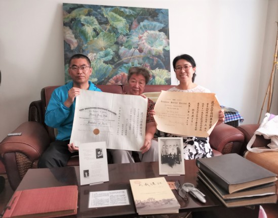 7月15日、16日,档案馆工作人员赴京先后访问了东京大审判中国检察组首席顾问、沪江校友倪征燠的女儿倪乃先,前中国驻美大使、沪江大学英文系毕业生李道豫,新中国首任气象局长、沪江校友涂长望的女儿涂多彬。获赠倪征燠校友1923年的沪江大学附中毕业证书,以及张凤桢校友1927年的沪江大学毕业证书等珍贵校史资料。 倪乃先介绍了她一家与沪江大学的缘分。父亲倪征燠就读于沪江大学附中,成绩名列榜首免学费直升大学文科一年级,母亲张凤桢和姨妈张维桢(罗家伦夫人)都是沪江大学毕业生,堂姑妈则是沪江大学1920年首批入学的四女生之一的倪征琮。家中珍藏着记录倪家和张家历史的五本照相簿,展现了四位沪江校友丰富多彩的一生,其中一张是刘湛恩、凌宪扬、郑章成、余日宣和倪征燠五对夫妇和其他人的合影。临别前,倪乃先将倪征燠校友和张凤桢校友两人的毕业证书无偿捐赠给档案馆永久保存,这是档案馆征集到的首张沪江大学附中毕业证书和最早的沪江大学毕业证书,对学校档案收藏和校史研究具有非常重要的意义。 李道豫回忆了解放前夕参加地下党和在沪江大学的求学经历,他最先就读于教育系,后经校务委员会主任余日宣和英文系主任高纳贝批准,转入英文系。1952年因国家建设需要,提早一年毕业,被选派到北京参与亚洲太平洋和平会议的翻译工作,会议结束后被分配到外交部,由此开始外交工作生涯,并回忆了他担任中国常驻联合国代表和驻美大使期间经历的重大事件:第一次海湾战争、台海危机、江泽民访美等诸多细节。最后李道豫同意为档案馆提供他外交生涯的珍贵历史照片供存档。 涂多彬今年5月曾到访档案馆,展示了涂长望校友1955年当选中国科学院院士的证书,以及解放初筹建中央气象局的工作笔记等珍贵手稿。 毕业证等实物是学校百十余年历史的见证,口述史是学校发展的原始记录。档案馆将会继续通过各种途径,努力征集沪江大学时期和上海机械学院时期校友的珍贵实物,开展对校友的口述访谈工作,进一步挖掘校史资源丰富的档案史料,以服务学校高水平大学建设。