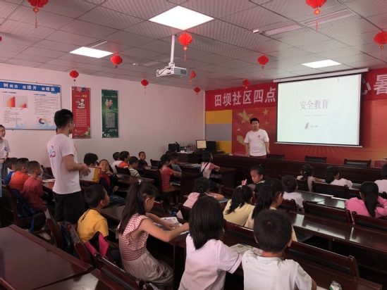 “星火相传”实践队在新四军苏浙军区纪念馆 坐标:贵州省湄潭县 7月15日 30℃ 晴 心情:爱心“满格”,化身脱贫攻坚战“战士” 三十二排长桌、六十把座椅、百平米场地,这是贵州省湄潭县四十余个小朋友的暑期学习课堂。在这里,光电信息与计算机工程学院筑梦小分队化身脱贫攻坚战的“战士”,进行实地调研和暑托班服务。 湄潭县去年刚刚摘掉贫困县的“帽子”,在易地扶贫搬迁实施的三年多时间里,共计搬迁15143人,田坝社区是湄潭县最大的搬迁安置点,如今依旧存在社区难管理、城镇难融入等问题。团队上午给孩子们授课、辅导,下午去调研当地的扶贫攻坚情况。“我们在辅导小朋友暑期作业的同时,还开展绘本阅读、军体拳、科学小课堂等丰富的课程,后续可以进行远程授课、建立电子图书馆,助力贵州省脱贫攻坚战。”队员严俊介绍道。 在团队调研的湄潭县高台镇三联村,破旧的木屋建筑丛中,孩子在屋檐下嬉戏,老人在择菜,“再穷不能穷教育,再苦不能苦孩子”的标语刷在一旁的墙上。骆红燕感慨道:“精神文明建设是异地扶贫工作重要的方面,希望通过我们的微小努力,增强移民对社区的认同和融入,更好地适应新的城市生活。”
