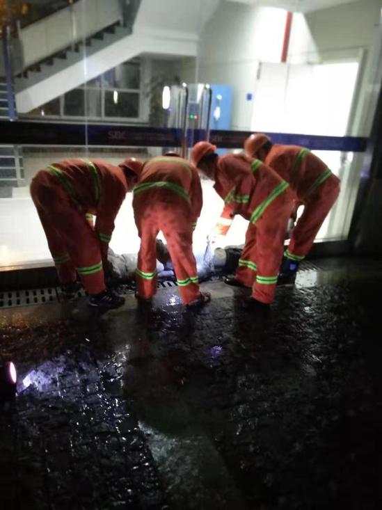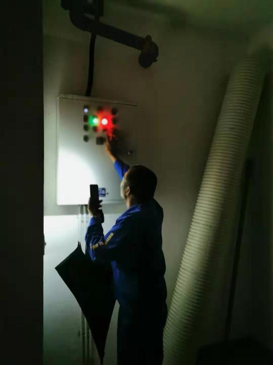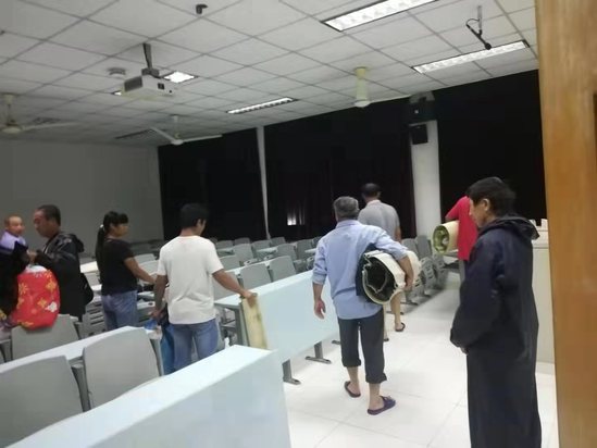 夜间电力设备安全检查 坚守岗位,妥善处置突发事件 在后勤管理处设置值班室,生乐物业、东方大学城物业经理24小时在岗值班,后勤应急抢险人员随时待命。值班人员分校区、分区域每2小时对校园巡视一次。及时处置倾倒树木6株,扶正桂花、海棠等树木12棵,清扫道路,疏通雨水井。安排400余名施工工人到第四教学楼、体育活动中心临时休息,确保施工人员安全。