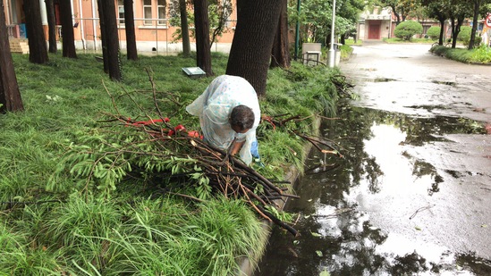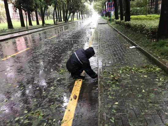 防台防汛工作会议 全方位巡查,排除安全隐患 后勤管理处依照《2019年防汛防台工作方案》,分组巡视检查防汛防台各项准备工作。检查各施工工地,暂停全校所有在建工程施工作业。开启排水泵站、疏通地下雨水管道,在地下车库、仓库、实验室及地势低洼的建筑门前放置沙袋。检查各楼宇门窗、悬挂物,修剪加固树木、清扫屋顶垃圾。加强值班,发现安全隐患及时排除。