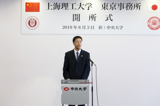 听取东京都防灾中心相关负责人介绍管理经验 代表团第三站到访日本中央大学,与日方共同举办上海理工大学东京办公室成立仪式。日本中央大学总长酒井正三郎、校长福原纪彦、樫山和男理工学部部长、白井宏国际中心所长,我校在日的校友代表、暑期日本游学交流的学生代表团,以及中央大学的师生代表参加了成立仪式。吴坚勇、酒井正三郎总长、福原纪彦校长等共同为东京办公室成立剪彩。成立仪式后,双方代表举行了简短热烈的恳亲会。 吴坚勇与中央大学福原纪彦校长就双方建立更加广泛深入的合作交流事宜进行了商谈,并代表双方签署成立上海理工大学东京办公室相关协议。成立仪式上,吴坚勇在致辞中表示,上海理工大学东京办公室是我校在海外成立的第一个教育文化执行机构,将致力于加强我校和日本大学之间的人才培养与科研合作,引领高等教育走上新的发展高度。东京办公室的成立标志着两校合作交流能级的进一步提升,也将成为上海理工大学与日本高校广泛开展国际合作交流的重要平台。两校将在开设学分互换课程、组建研究团队、举办中日国际学术会议等方面进一步深化合作交流。今年恰逢“中日青少年交流促进年”,期待中日青年能够坚定友好信念,不断播撒友谊的种子。日本中央大学校长福原纪彦在致辞中表示,中央大学与上海理工大学自建立合作关系以来,两校在学生交换和学术交流等方面十分活跃,结下了深厚的友谊。上海理工大学东京办公室作为中央大学设立的第一个国外大学事务所,对于进一步提升两校国际交流合作具有重要意义,期望两校在此基础上开展更加多元和深入的合作交流。