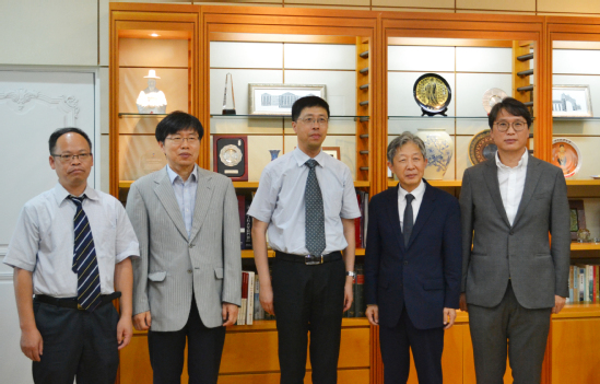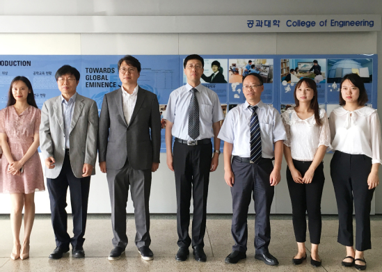 双方师生等合影留念 代表团第四站到访韩国庆熙大学。庆熙大学是韩国最著名的高等学府之一,也是较早与我校建立友好关系的韩国大学。代表团一行在工学院院长林星秀教授和副院长金昌永教授的陪同下,参观了庆熙大学磁流体仿真实验室、机器人模拟仿真实验室、材料化学实验室、镀膜实验室、材料特性评价实验室等重点实验室。随后,代表团与韩国庆熙大学副校长白蕓植、工学院院长林星秀等进行了会谈,双方听取了上海理工大学环建学院与庆熙大学工科学院合作交流的情况,就今后我校环建学院与工学院的深入合作达成初步意向,同时也探讨了在庆熙大学设立上海理工大学办事处和研究中心的初步意向。
