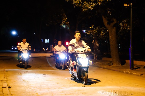 【丑时】 鸡鸣 30℃ 夏日上海的夜晚依旧闷热,保卫处的陈龙和巡逻班同事们一起开始又一次的夜间巡逻。“5+2”、“白加黑”是保卫处的值守常态。这个暑期里,巡逻班对校区重点部位加强巡查,各个校区每日要完成十多次的安全防范巡逻。陈龙对记者讲到:“一晃我已经在这个岗位上工作了九年。每一年、每一个假期、每一次的巡查任务,依旧让我们充满热情,希望我们的守护能够为建设平安校园添砖加瓦!”