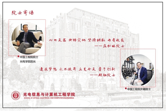 为扎实推进“三全育人”工作,在学校大类招生新形势下加强新生的专业学习、认知和了解,强化家校协同育人。光电学院开展了形式多样,类型丰富的迎新活动。 最贴心:院士大咖寄语新生。学院高度重视新生的思想政治教育工作,牢牢抓住新生报到时间点,庄松林院士、顾敏院士主动为新生书写寄语,并将寄语制作成明信片和特色扇子送给新生。庄院士勉励各位新生“心比天高,脚踏实地;坚持耕耘, 必有收获”,顾院士为学院每一位新生写下“追求梦想,永不放弃;立足今天,勇于创新”的寄语。开学后,庄院士和顾院士还会为新生讲课,帮助学生尽快了解专业学习,树立远大理想信念。