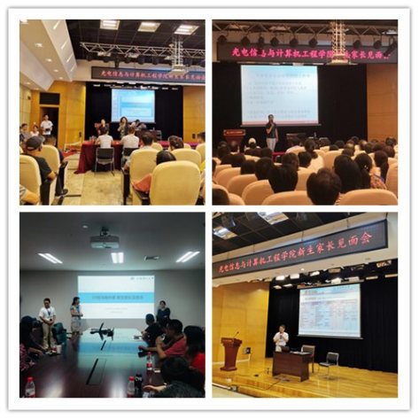 新生家长见面会 最有心:新时期班主任育新生。为扎实推进“三全育人”工作,发挥各类德育资源形成育人合力,光电学院推行新时期班主任工作。一方面,整合各类育人资源探索新时期班主任育人途径。学院以教育部“三全育人”试点院系为契机,通过邀请学校职能部处、校团委、马克思主义学院和学院领导担任新生班主任,形成育人合力。另一方面,学院召开新时期班主任工作培训会。8月23日,光电学院党委书记、副书记、基础学院辅导员代表与班主任等参加新时期班主任工作培训会,为班主任迎新工作顺利开展打好基础。此外,新生班主任采取多种途径与学生交流。新生报到当天,新生班主任不仅到报到现场,还通过依托学校电子、召开家长座谈会、举行新生班会和下寝室等方式与新生、家长建立联系和交流,帮助新生尽快适应大学生活,做好大学学习、职业生涯规划。