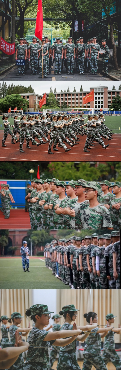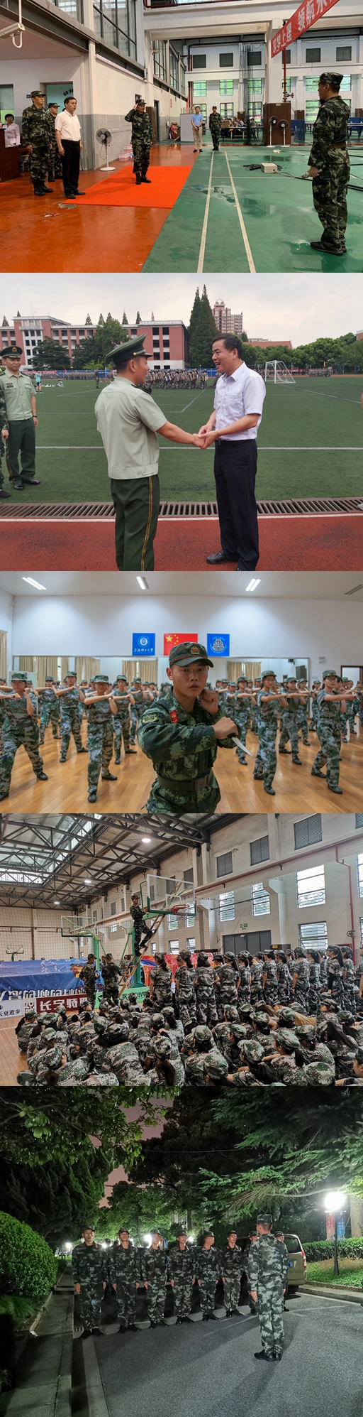 校领导视察军训情况 严训勤练强体魄,迷彩热血铸军魂 顽强拼搏尽显军人风骨,千锤百炼培育钢铁意志,挥别假期的舒适惬意,新生们迎来了在上理的第一番磨砺。各大方阵科学施训,严格要求。伴随着教官一声指令,稍息、跨立、齐步走这样的动作不断重复。除了日常的军事训练,学校延续了往年分科目训练的军事技能教学模式,应急棍术、威风锣鼓、刺杀操、擒敌拳、女子匕首操等11个项目在三个校区如火如荼铺展开来。 烈日下、绿茵场、校园路、方阵间,整肃的军容、响亮的口号、坚定的眼神、飒爽的英姿,处处彰显上理学子的蓬勃朝气。站军姿、踏正步、齐队列、学格斗,汗水浸湿衣襟,风雨淋透鞋帽,一颗颗不服输的心在考验与磨砺中砥砺成长。