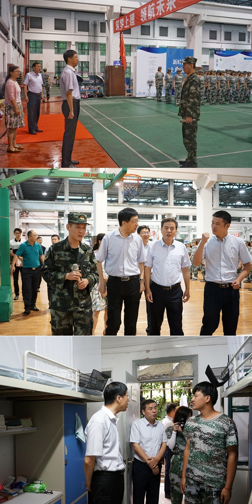 理论教育同步进行 亦师亦友共训练,亦苦亦甜同坚守 有这样一群人,他们穿着统一的制服,喊着一致的口令,军训场上,他们不苟言笑;休息间隙,他们谈笑风生;动作示范,他们英姿勃发。他们就是承训教官,将军队优良的作风和革命精神融入军训,高标准严要求,从摆臂到转身,从踢腿到踏步,循环重复,每一个动作都要严格把关,努力锻造学生最坚强的意志。与学生同训练、共苦乐,“天使脸庞,魔鬼训练”,“正气凛然,可亲可爱”这是新生们眼中的教官。教官不仅教授军事技能,也传授人生道理。“在训练过程中,你们再苦再累我都不会心软,不是不关心你们,而是我知道,在今后的生活里,你们需要坚忍来给你们支持与力量。”九连五排刘教官如是说。承训教官也在军训前进行了严苛的训练,对军训期间的军事教学技能、内容、要求等进行了一一规范。 军训期间,武警上海总队副参谋长王勤光带训练处处长张琦、队管处副处长杨敏华视察我校军训工作,武警上海总队机动第一支队支队长于怀同,机动第一支队副政委颜靖中校受部队首长委托,来我校视察慰问军训开展情况。