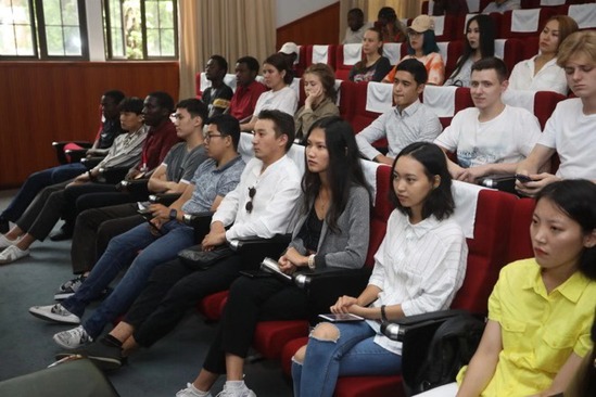 9月5日下午,上海理工大学2019级国际新生开学典礼在格致堂201报告厅举行。来自五大洲、三十多个国家的国际新生汇聚沪江,开启了人生崭新的篇章。上海理工大学副校长蔡永莲、沪江学院特聘院长顾云深、留学生办公室主任苏明旭、研究生院副院长金晶、学生工作部副部长黄志强、沪江学院副院长梁昱等出席开学典礼,典礼由沪江学院常务副院长、直属党支部书记陈红主持,2019级国际学生参加了开学典礼。 典礼伊始,与会人员共同观看了国际新生自制的的入学教育短片,短片中包含国际学生走进校园、认真听讲座、在校园各处打卡、同学之间日渐熟悉等精彩瞬间,沪江学院围绕学习校史、学业规划、遵纪守法、校园安全及文化生活等方面开展了国际学生的入学教育活动。 典礼上,蔡永莲首先致欢迎辞,她代表学校党政领导向来自世界各地的国际学生们表示热烈的欢迎和祝贺,并对他们在上理工的生活作出展望和祝福。蔡永莲向国际学生介绍了学校的悠久历史、办学特色和严谨学风,并向国际学生提出了三点希望和要求,一要尽快适应环境,融入到上理大家庭之中,全方位、多层次地参加学校丰富的文化体验活动,了解中国文化与中国生活;二要珍惜在上理的学习时光,刻苦学习,成为具有国际视野、科学思维、工程能力的卓越工程人才;三要积极成为传播文化的使者,成为中国与自己祖国交流的友好使者和桥梁。 顾云深在讲话中结合自己丰富的国际合作和交流经验,希望国际学生在上海这座国际化都市、上理工这所国际化大学里,要珍惜留学的美好时光,以学习中文作为打开中国文化艺术大门的钥匙;要了解并遵守学校的规章制度,顺利完成学业;要充分利用沪江学院为大家在学业、生活、文化活动方面提供的平台,积极参加学院活动,更好更快地融入上理工,使自己在上理工的学习生活愉快、顺利。 苏明旭在简单介绍留学生办公室的职责和工作后,还特别要求国际学生加强汉语学习,不断提高汉语水平,与指导老师和中国学生保持良好的沟通,严格遵守中国法律法规和学校各项规章制度。 来自几内亚的光电学院研究生萨优Sayon同学作为老生代表发言,他与大家分享了自己本科在上理学习的经历,告诉大家他之所以选择留校读研继续深造,是因为上理是他成就梦想的地方,他还和新生分享了一句中国古话“书山有路勤为径,学海无涯苦作舟”,表示要努力学习,希望未来将自己在上理工学到的先进科技知识带回祖国。 新生代表、来自哈萨克斯坦的管理学院德博士小娅在发言中讲到,自己从小对中国充满向往,喜欢中国文化,希望未来自己能和中国同呼吸、共命运。美丽的上理工校园环境给她留下深刻的印象,她深深地感谢所有给予她帮助的友好热情的师生。她表示今后一定会学好专业知识和中国语言文化,珍惜在上理的每一分每一秒,铺设好未来的每一砖每一瓦。