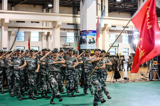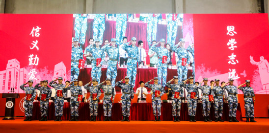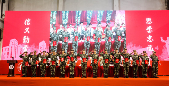 9月6日上午,我校2019级本科生开学典礼暨军训总结表彰大会在体育活动中心举行。校党委书记吴坚勇,校长丁晓东,中国工程院外籍院士、光电学院教授顾敏,校党委副书记刘道平、顾春华、孙跃东,副校长陈斌、蔡永莲,总会计师赵明,副校长张华,武警上海总队机动第一支队支队长于怀同,上海警备区战备建设局处长邹慧,上海市教委体卫艺科处副处长赵靖茹,学校相关职能部处负责人、各学院党政领导、教师和家长代表、新生辅导员以及全体2019级本科生参加。大会由校党委副书记、副校长盛春主持。 由新生创作的军训航拍片《00后的军训 看我的》拉开了开学典礼序幕,视频再现了军训期间的精彩瞬间,展现了新上理人昂扬的精神风貌。本次新生军训从8月25日起,由武警上海总队机动第一支队50名教官和我校29名退伍大学生教官共同承担军训任务。 英姿飒爽的国旗护卫队迈着整齐有力的步伐,护送国旗入场。伴随着庄严嘹亮的国歌声,五星红旗冉冉升起。在场师生全体起立,向国旗行注目礼。校旗队昂扬阔步走过主席台,尽展飒爽英姿,大会正式开始。 4000余名2019级本科生分39个方阵接受了校党委书记吴坚勇的检阅,依次从主席台前走过,进行分列式展示。他们目光如炬、步伐坚定、口号嘹亮,展现了艰苦训练的成果和昂扬的斗志。 校党委副书记刘道平宣读了关于军训优秀教官、优秀个人及优秀学员的表彰决定,全体领导为优秀教官代表颁发证书。吴坚勇代表学校向武警上海总队机动第一支队赠送锦旗,感谢承训部队对我校军训工作的大力支持。于怀同代表承训部队接受锦旗,并向我校对军训工作的肯定表示感谢。他在讲话中鼓励上理学子坚定理想信念,坚持文武兼备,不负青春梦想,在“信义勤爱 思学志远”校训的熏陶下尽展其才。 新生代表於尹帆、家长代表臧立谦、教师代表高广阔分别发言,他们是上理的萌新、默默守望的父母以及扎根上理的匠心师者。他们都有一个上理梦,希望在人生的新阶段寻求更加多元化的发展;盼望与孩子并肩同行、相互成就;期望在有限的工作岁月多培养一名卓越的“上理人”。他们身上凝聚着无数上理人共同的家国梦想。 大会现场,学生和教官带来了一场精彩纷呈的军事汇演。除了学生分列式展示,鼓阵、军乐队演奏、刺杀、擒敌配套、旗阵、应急棍、匕首操等11个科目表演轮番上阵。 “00后”新生用歌声献礼新中国成立70周年,600人创意拼字方阵不断变换出“信义勤爱、思学志远、70周年、我爱上理、我爱你中国……”的字样,动人的音乐在耳边响起,13米长的巨型国旗从场地后方接力向前。教师代表、教官代表、学生教官代表和学生代表领唱,在场师生一起挥动手中的国旗,放声歌唱《我爱你中国》。歌声回荡在体育馆、实训室、林荫道……越来越多的师生加入,全场国旗摇曳,军民同唱一支歌,献礼祖国70周年华诞。 “从此,‘上理人’将成为铭刻你们一生的标签!”校长丁晓东在讲话中向2019级新同学表示热烈的欢迎,向两周以来辛劳付出的武警官兵们表示崇高的敬意和衷心的感谢。他指出,今年是上海理工大学“深化大类招生年”,学校坚持“厚基础、强实践、高标准、严要求”,为同学们的发展设置了更多选项。作为学校深化大类招生首招的一届学生,在深化复合型人才培养背景下,同学们更应该掌握那些万变不离其宗的原理和规律,学习那些涉及面广、迁移性强、概括度高的“核心知识”,这是开展专业和跨专业学习、研究、工作的关键和基础。 “要澄清对大学学习的误读,避免落入‘玩命的中学,轻松的大学’误区”,校长循循善诱、殷切嘱托,希望同学们继续保持刻苦学习的作风,锤炼“硬核”本领,创造更多可能,让未来之路越走越宽。他表示,学校为同学们提供了载体、平台和机会,希望同学们不再囿于传统的“老师教、学生听”的学习模式,而是更多地围绕解决某个问题、推进某个项目、完成某项工作,去自主地学习与之相关的知识,以问题为导向,构建跨学科的知识谱系;去积极地参与团队、建立合作,与不同背景、专业的老师和同学交流沟通、协同攻关,提高综合素养与创新能力。最后,他勉励同学们要坚持以学习为大学生活的第一要务,适应社会新要求,引领学习新风尚,争当好学、思学、乐学、善学的“硬核”青年。