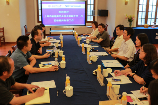 9月3日下午,上海市教育委员会副主任李永智一行到复兴路校区调研中英国际学院的合作办学、教师教学激励计划和信息化建设情况。校长丁晓东、副校长蔡永莲及学校相关职能部门和学院负责人参加座谈。上海市教委信息办主任李海伟、人事处副处长于希嘉、国际交流处副处长栾雪莲、上海市师培中心副主任殷以杰陪同调研。 丁晓东校长向李永智副主任一行的来访表示欢迎,他结合学校稳步推进高水平大学建设中所取得的成绩和进展,介绍了学校在开拓中外合作办学领域的新思路、进行教师教学激励计划政策修订的新举措以及推动智慧校园建设的新动向。 李永智副主任对学校在高水平大学建设过程中的改革思路与举措,以及在中外合作办学中所作的创新探索表示了充分的肯定,他希望学校能为上海高等教育的改革与发展提供创新方案,教委也将在国际化教育、师资队伍、信息化建设等方面给予更多的支持。 会上,中英国际学院、人事处、信息办主要负责人分别作了工作汇报,并与教委各相关处室负责人进行了深入交流讨论。